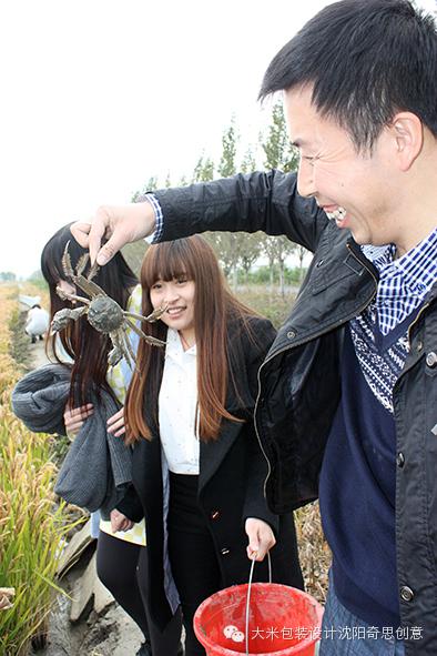 (沈陽奇思創(chuàng)意團(tuán)隊在錦珠米業(yè)稻蟹種養(yǎng)基地內(nèi)捉螃蟹)