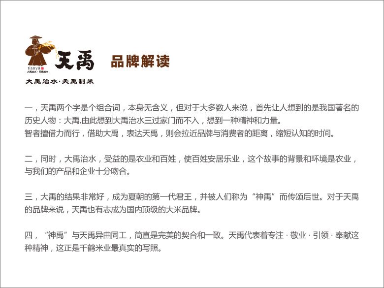項目內(nèi)容:盤錦千鶴米業(yè)——天禹品牌VIS全案
