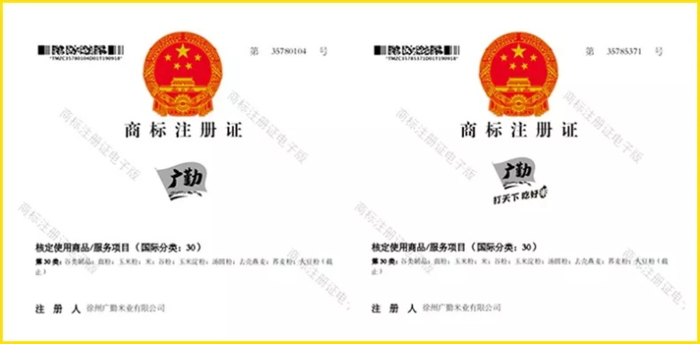 一經(jīng)策劃和設(shè)計(jì),便請(qǐng)鄭總進(jìn)行了商標(biāo)的注冊(cè),不僅保護(hù)了廣勤新設(shè)計(jì)的logo,還有廣勤打天下吃好米,知識(shí)產(chǎn)權(quán)的保護(hù)非常的重要,現(xiàn)已拿到商標(biāo)證。(上圖)