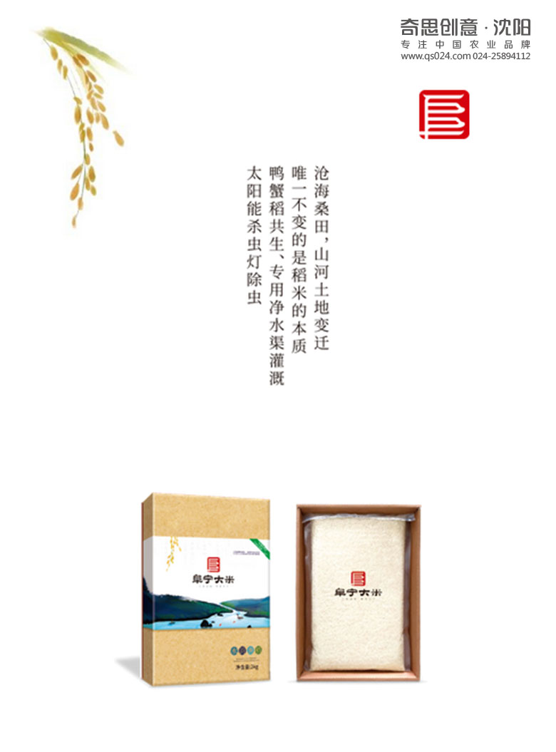 大米包裝設(shè)計(jì),看似簡(jiǎn)單,卻蘊(yùn)含深刻的學(xué)問。只有符合品牌調(diào)性的LOGO和廣告語,才能助于品牌傳播,在市場(chǎng)上占據(jù)份額。阜寧素有“江淮樂地”之稱,位于江蘇沿海中部,氣候溫和,土壤肥沃,特產(chǎn)優(yōu)質(zhì)大米。但目前市場(chǎng)競(jìng)爭(zhēng)較大,射陽大米、淮安大米等品牌割據(jù)市場(chǎng)份額,阜寧大米品牌推廣相對(duì)滯后,批發(fā)、零售、商超等,不成規(guī)模,各自為政,良莠不齊,消費(fèi)者對(duì)于品牌沒有明確認(rèn)知,開拓阜寧大米新優(yōu)勢(shì),圍繞創(chuàng)新驅(qū)動(dòng)戰(zhàn)略、增強(qiáng)品牌建設(shè)是必行之路?;谌绱爽F(xiàn)狀,阜寧糧食局領(lǐng)導(dǎo)找到有十多年農(nóng)業(yè)品牌策劃經(jīng)驗(yàn)的奇思,并親自來奇思考察,當(dāng)場(chǎng)敲定全案策劃合作。