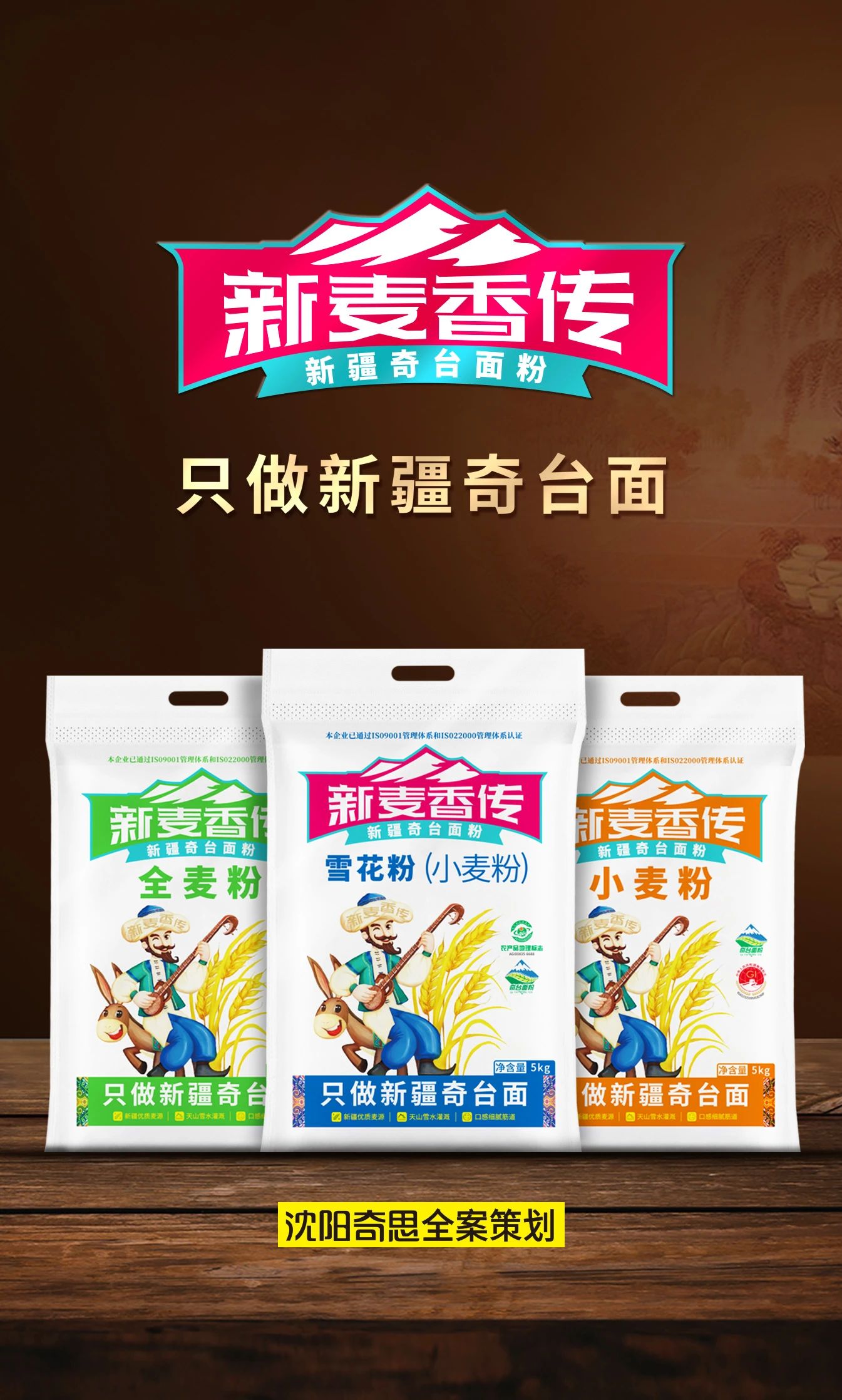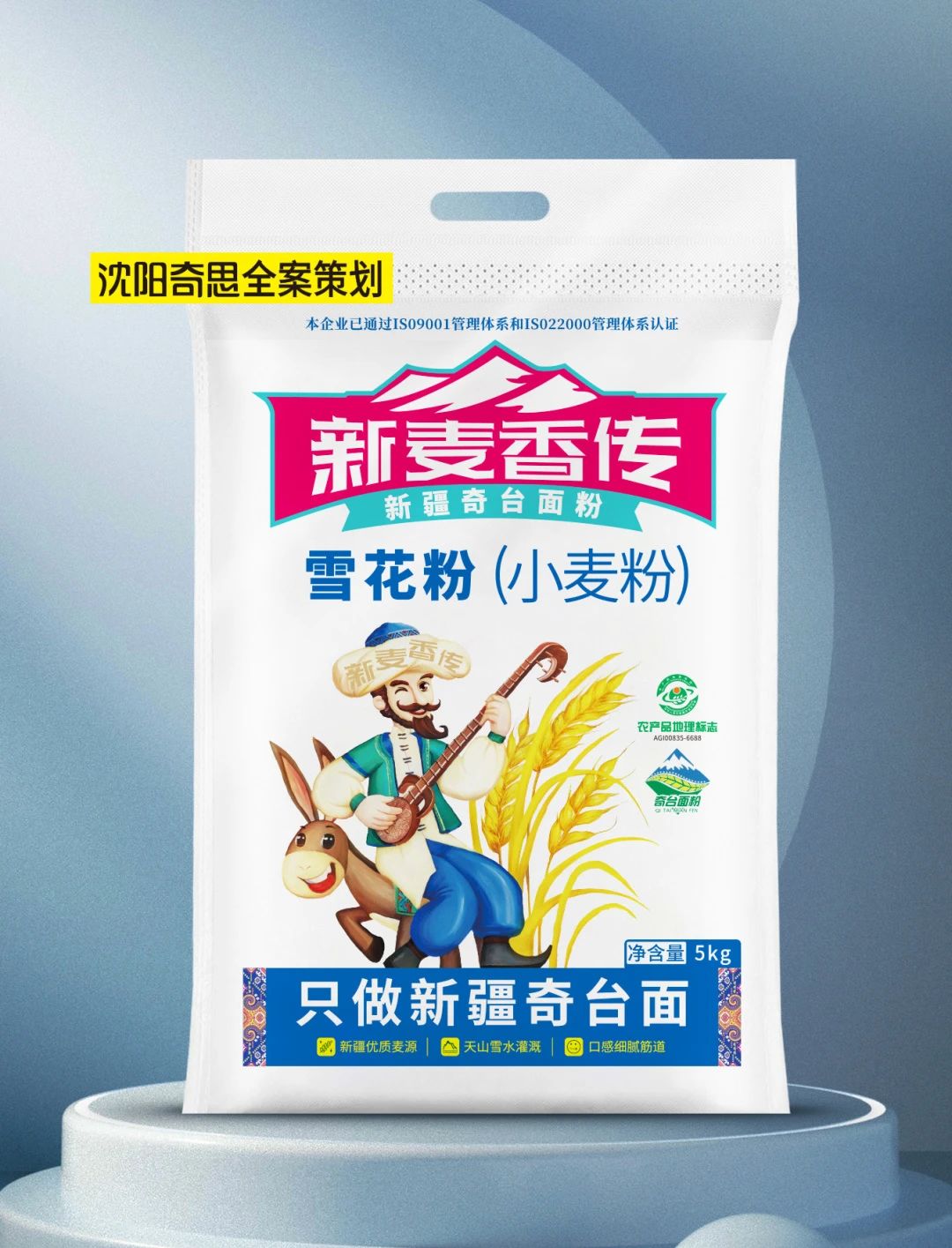 新麥香傳只做新疆奇臺(tái)面,楊總與奇思合作近10年,本次為新麥香傳打造新疆面粉包裝,以阿凡提為代言人,塑造大家熟悉并喜愛的品牌形象。