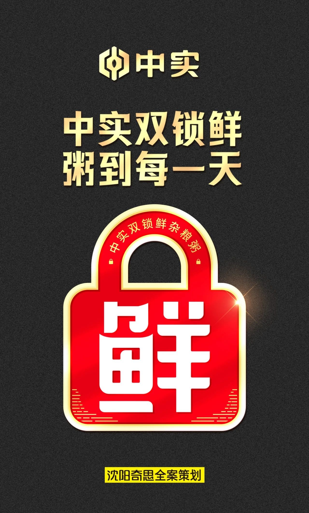 根據(jù)中實(shí)雜糧粥采用保鮮效果更好的鋁膜包材做內(nèi)袋包裝,以及在生產(chǎn)中應(yīng)用充氮保鮮工藝,兩項(xiàng)加工優(yōu)勢(shì)確保產(chǎn)品新鮮,奇思為其策劃出“雙鎖鮮”概念,與競(jìng)爭(zhēng)對(duì)手形成差異化,用“雙鎖鮮”一詞占領(lǐng)心智,策劃出中實(shí)雜糧粥的口號(hào)。